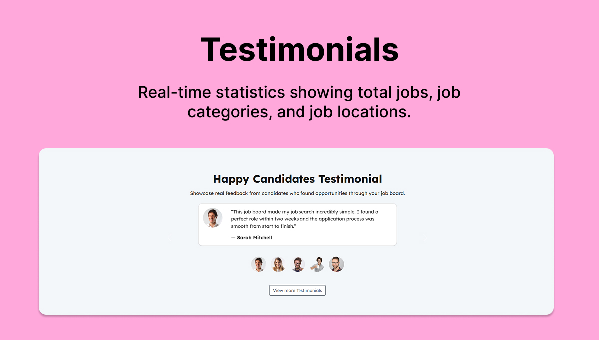 Here we list our site stats and how many people we’ve helped find a job and companies have found recruits. It's a pretty awesome stats area!